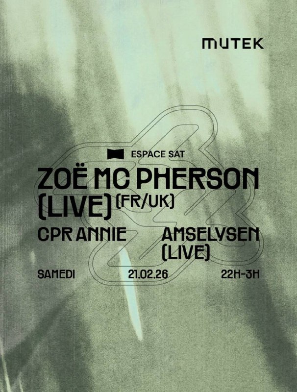 | Linked To Flyers: | Club SAT X MUTEK — Zoë Mc Pherson (live) (FR, UK) • CPR Annie • Amselysen (live) |