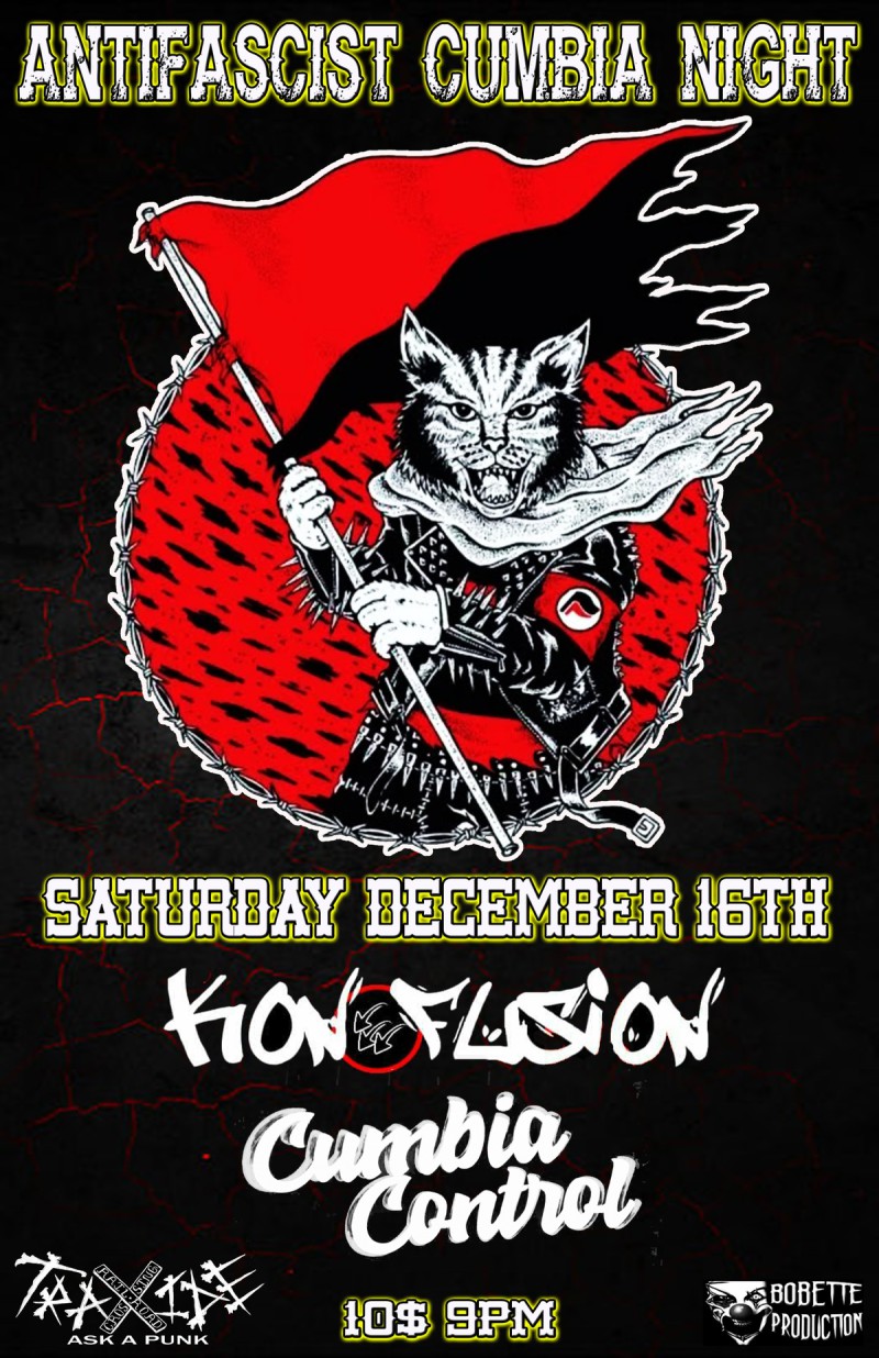 | Linked To Flyers: | Antifascist Cumbia Night At Traxide With Konfusion And Cumbia Control! |