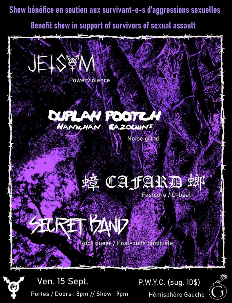 | Linked To Flyers: | Benefit Show In Support Of Survivors Of Sexual Assault - Jetsam, Duplah Pootch, Cafard Special Guest |