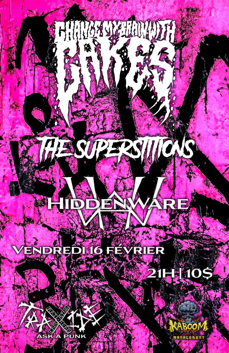 | Linked To Flyers: | Change My Brain With Cakes, The Superstitions Et HiddenWare |