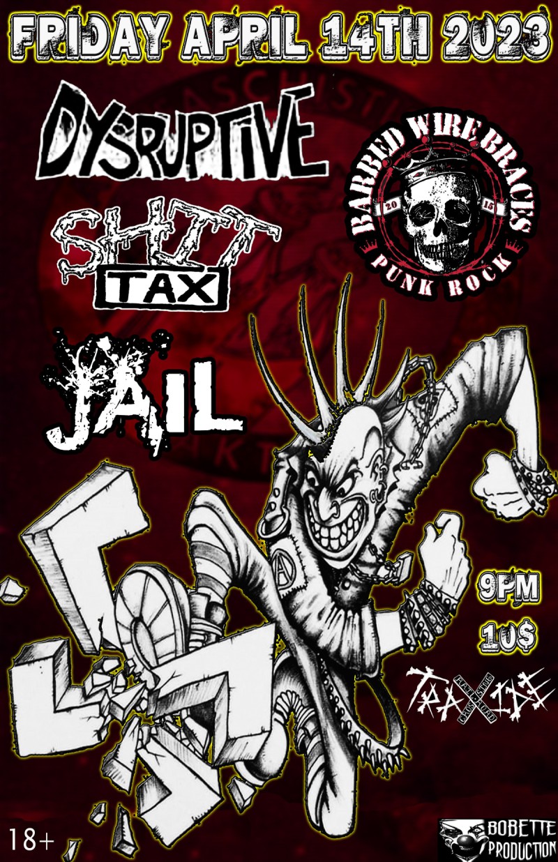 | Linked To Flyers: | Dysruptive, Shit Tax, Barbed Wire Braces, Jail |