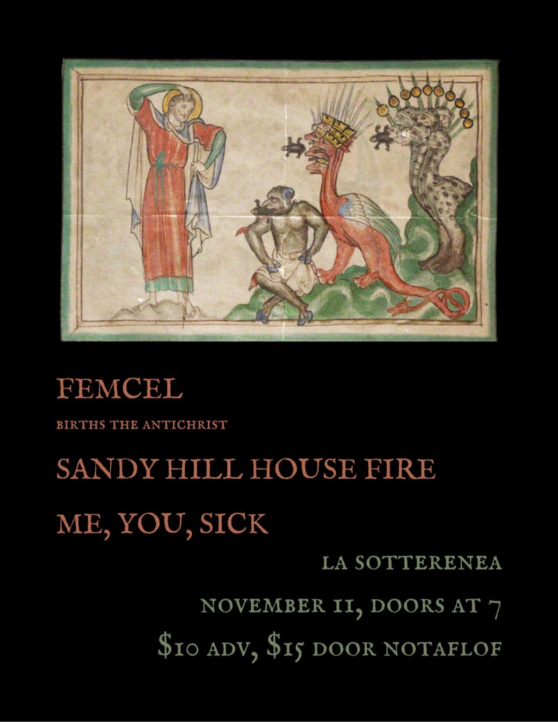 | Linked To Flyers: | FEMCEL, Sandy Hillhouse Fire, Me, You, Sick. |