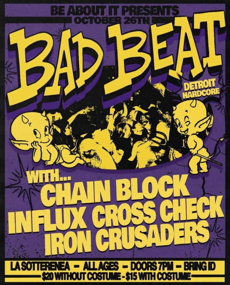 | Linked To Flyers: | HALLOWEEN HARDCORE; BAD BEAT, CHAIN BLOCK, INFLUX, CROSS CHECK, IRON CRUSADERS |