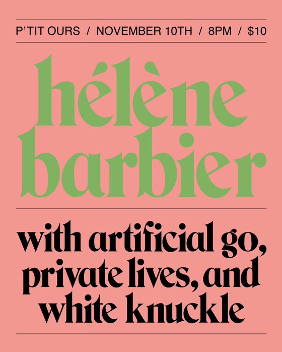 | Linked To Flyers: | Hélène Barbier, Artificial Go (Cincinatti, Feel It Records), Private Lives, White Knuckle |