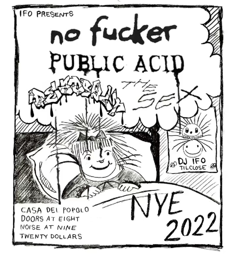 | Linked To Flyers: | IFO NYE Show: No Fucker, Public Acid, Deadbolt, The Sex, Ilusion |