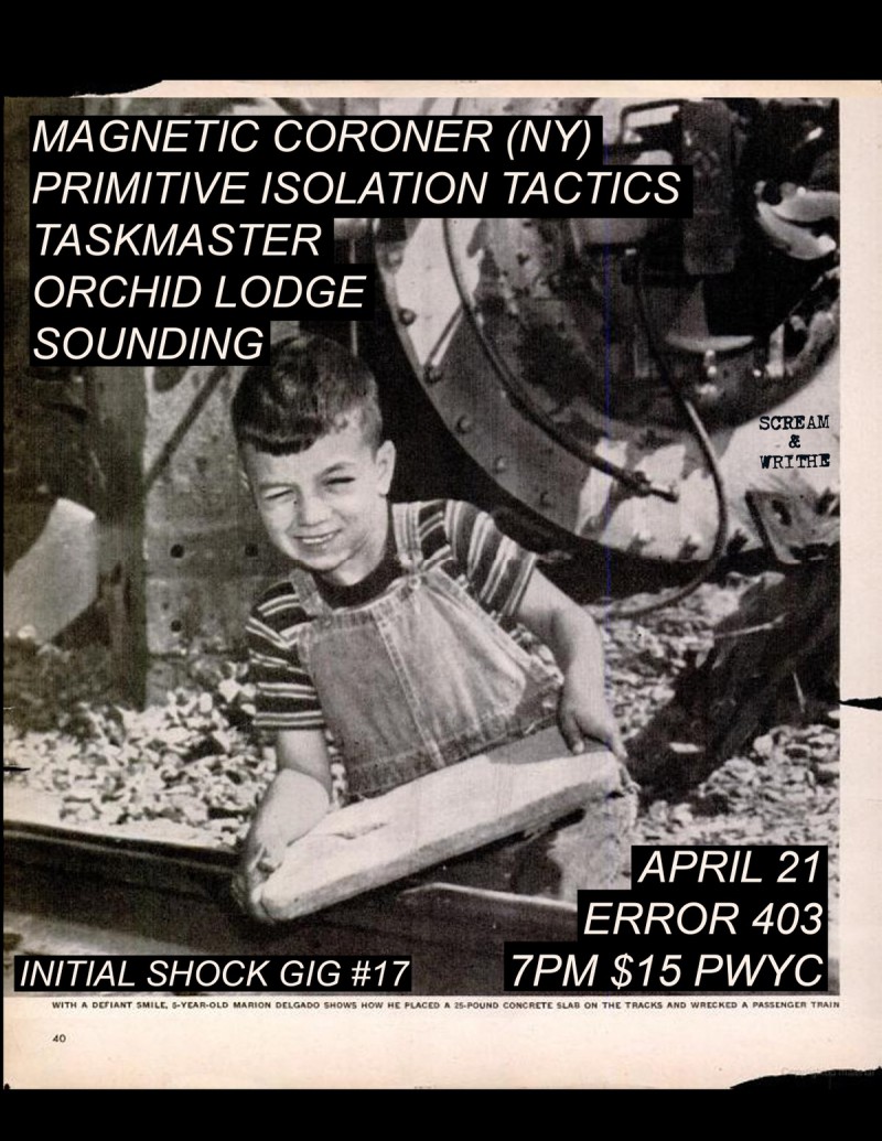 | Linked To Flyers: | Magnetic Coroner, Primitive Isolation Tactics, Taskmaster, Orchid Lodge, Sounding |