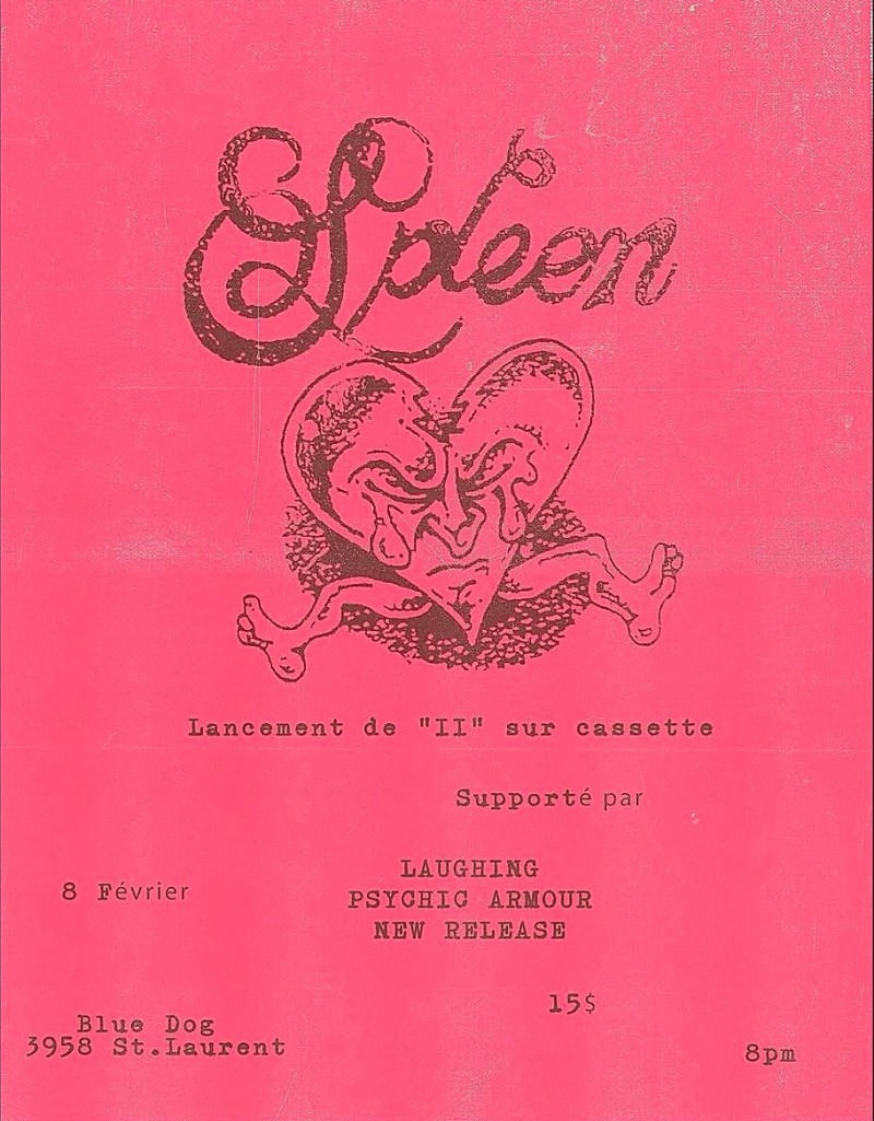| Linked To Flyers: | SPLEEN "II" TAPE RELEASE SHOW W, LAUGHING, PSYCHIC ARMOUR, NEW RELEASE |