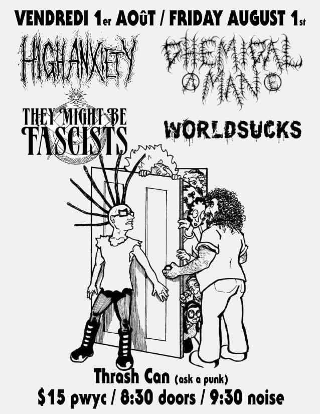| Linked To Flyers: | They Might Be Facists WORLDSUCKS High Anxiety Chemical Man @Thrash Can |