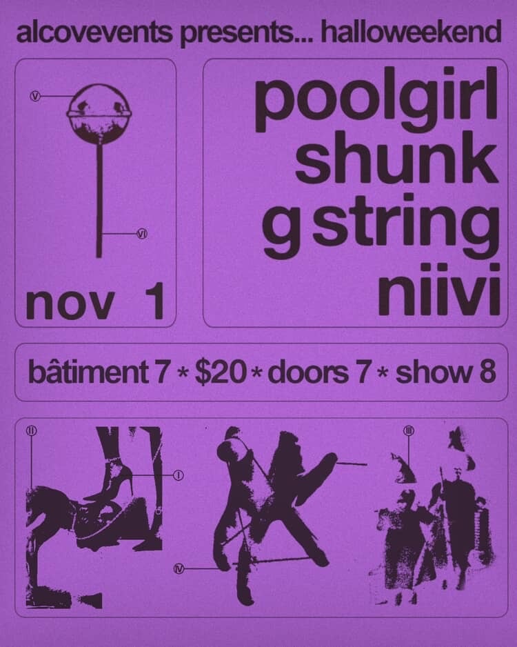 | Linked To Flyers: | Alcove Presents : Poolgirl, Shunk, Niivi, Gstring |