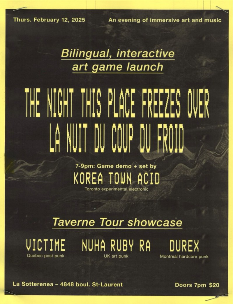 | Linked To Flyers: | THE NIGHT THIS PLACE FREEZES OVER, LA NUIT DU COUP DU FROID X TAVERNE TOUR |